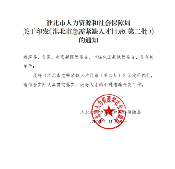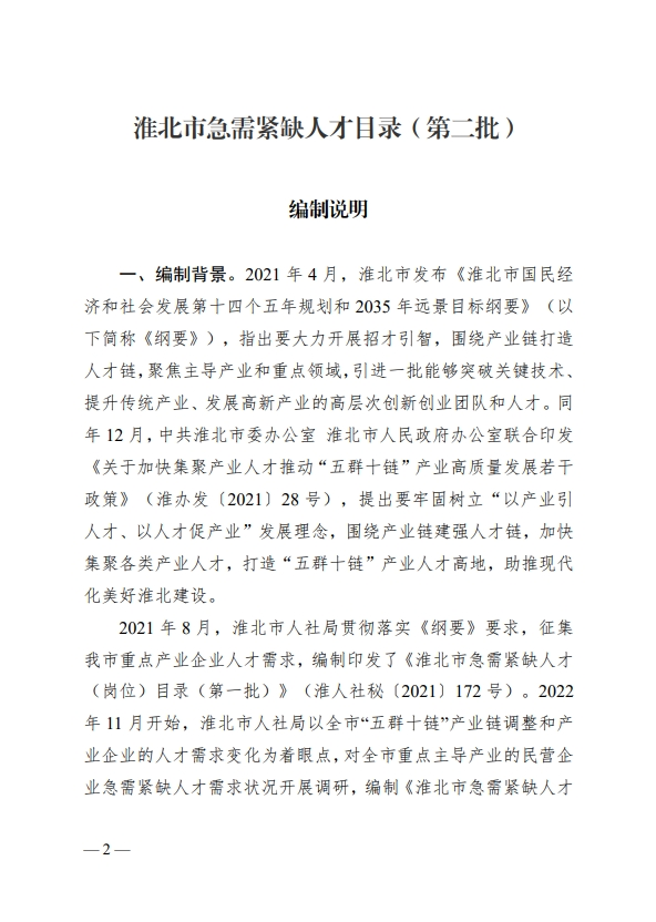 关于印发《淮北市急需紧缺人才目录(第二批)》的通知